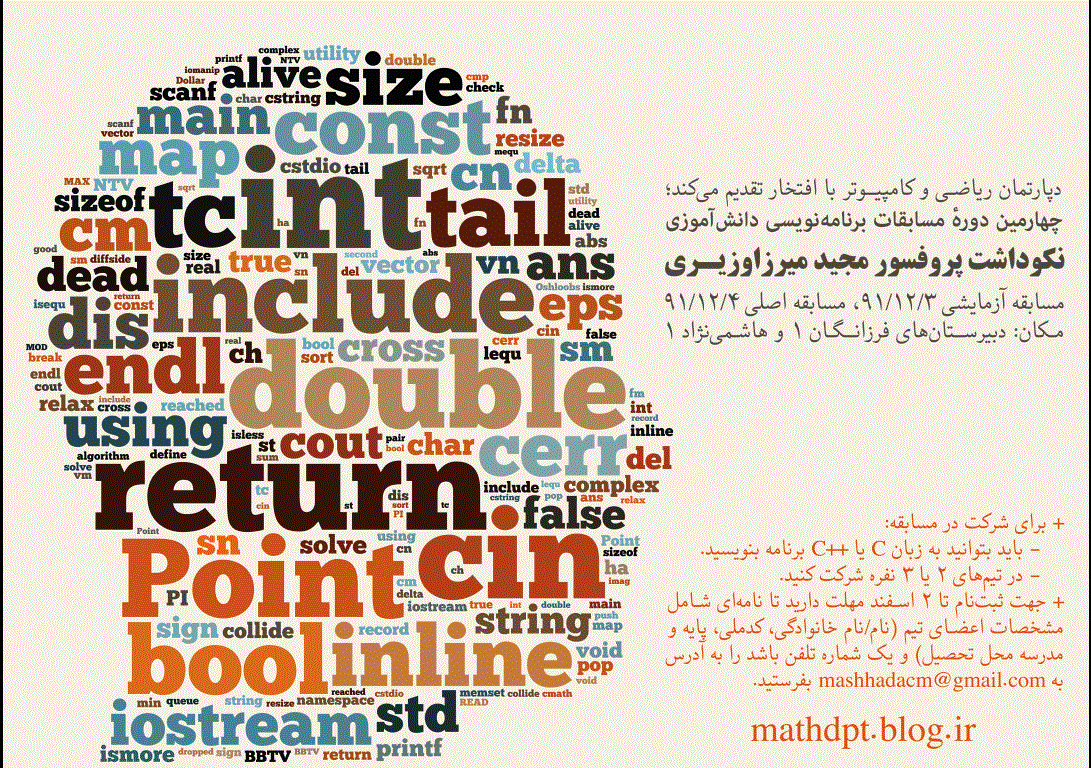 ماجرا ازین قراره که یک مسابقه ی برنامه نویسی به سبک -ای سی ام- میخواد برگذار شه. برای حل نمونه سوال میتونین برین اینجا: acm.sgu.ru